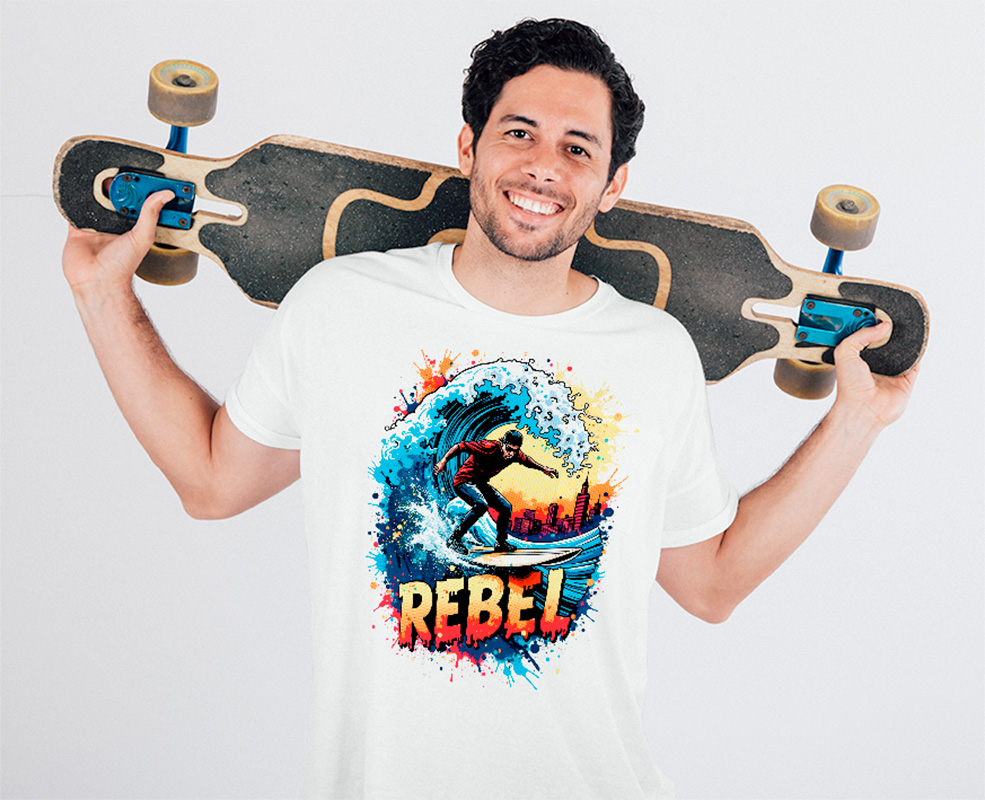 Estampa DTF de alto impacto aplicada em tecido premium.