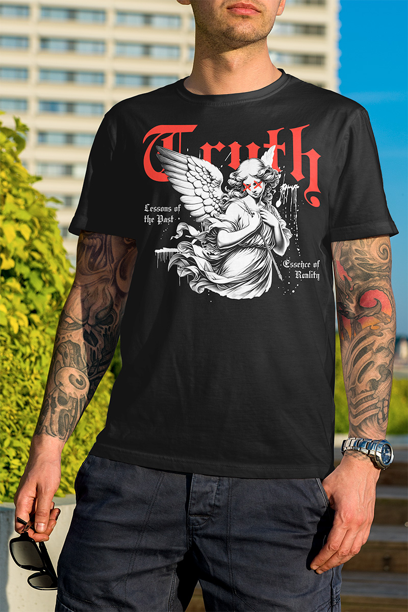 Estampa DTF com forte presença visual, aplicada sobre tecido de alta qualidade, pensada para manter cor e definição ao longo do tempo.