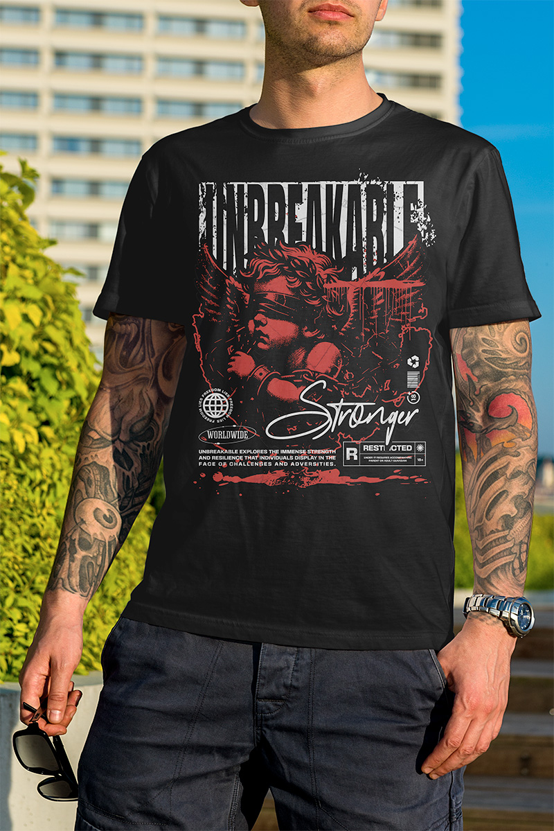 Estampa DTF de alto impacto aplicada em tecido premium.